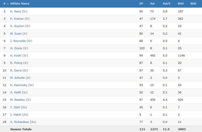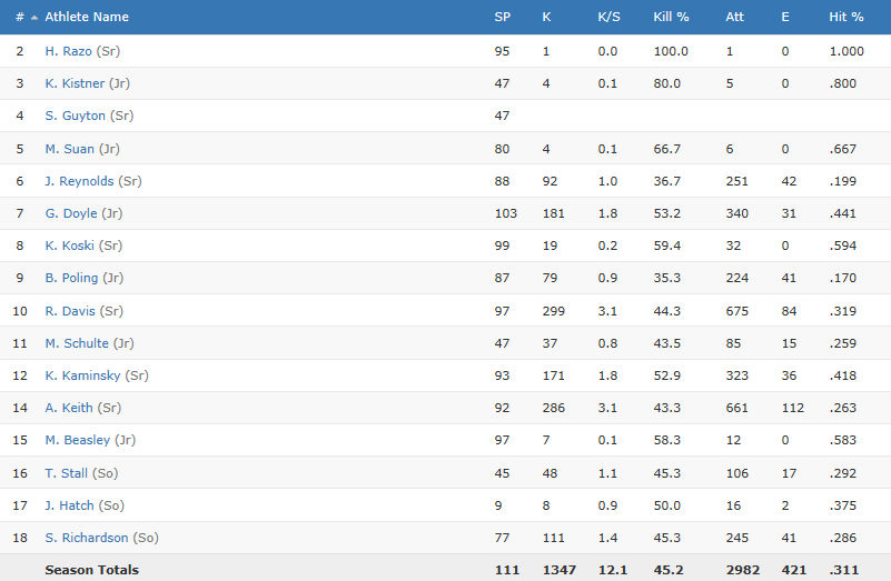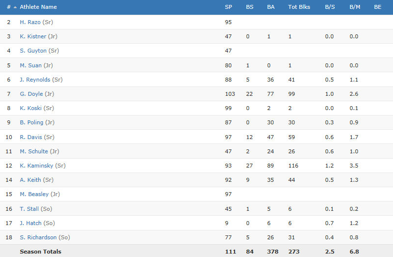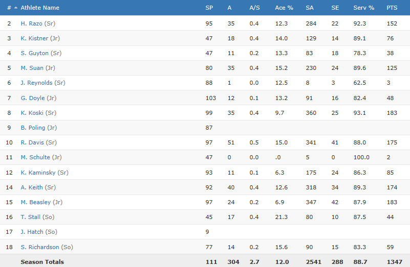 SERVING BLOCKING DIGGING BALL HANDLING SERVE RECEIVING For more statistics visit our MaxPreps page |
