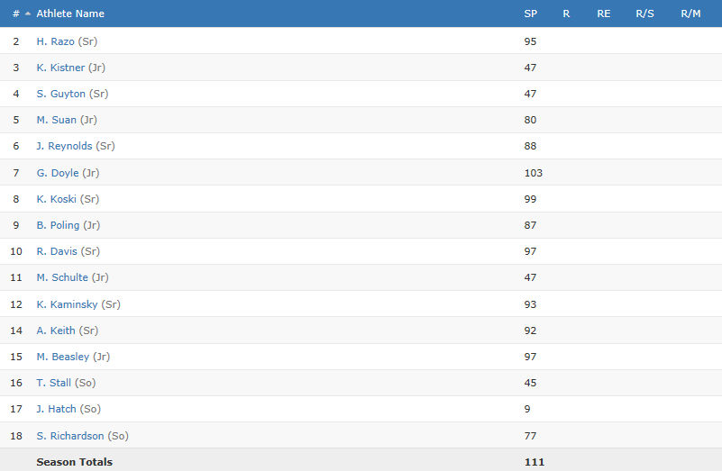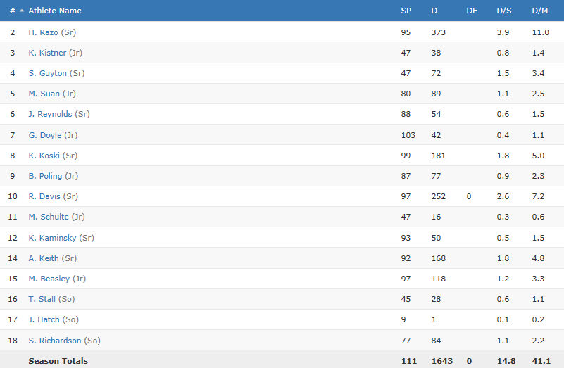| 3 | KEELYN KISTNER | S | 11 | |||||||